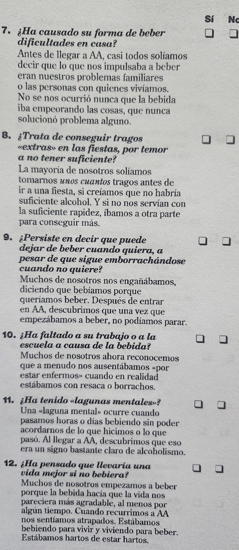 AUTODIAGNOSTICO DE ALCOHOLICOS ANONIMOS